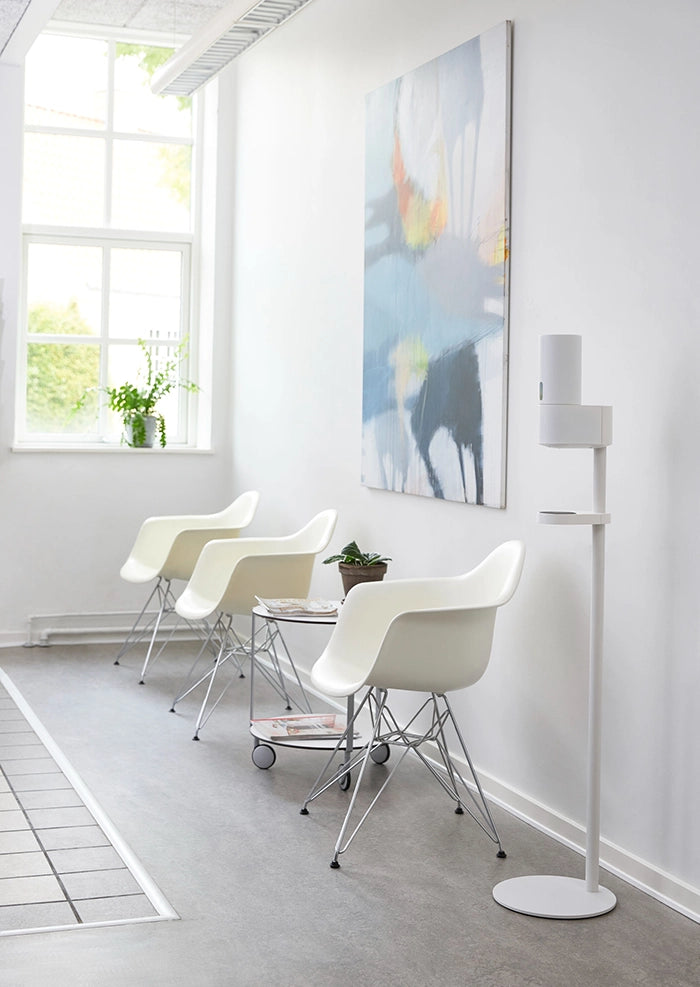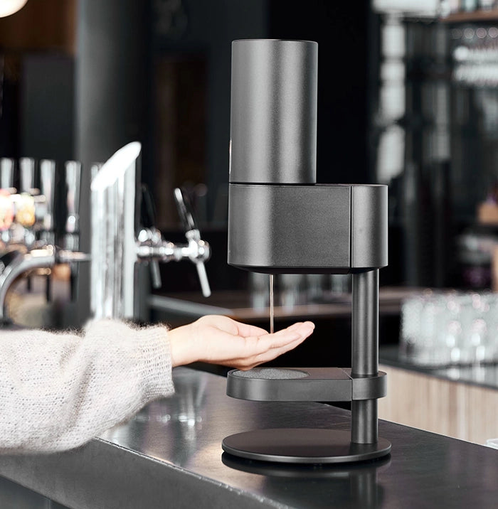 Välj mellan strömalternativ för batteri eller väggsladd. Batteriet räcker till cirka 30 000 doser med ett enda tryck. Med en behållarvolym på 0,9 liter säkerställer den långtidsanvändning och är både RoHS- och CE-godkänd. Utvecklad och producerad av Scancastor, denna dispenser har rena, vackra linjer designade av den prisbelönta danska designstudion Hans Thyge & Co.